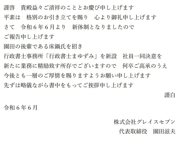 新体制のお知らせ|東大和市の賃貸・不動産売買なら株式会社グレイスセブン