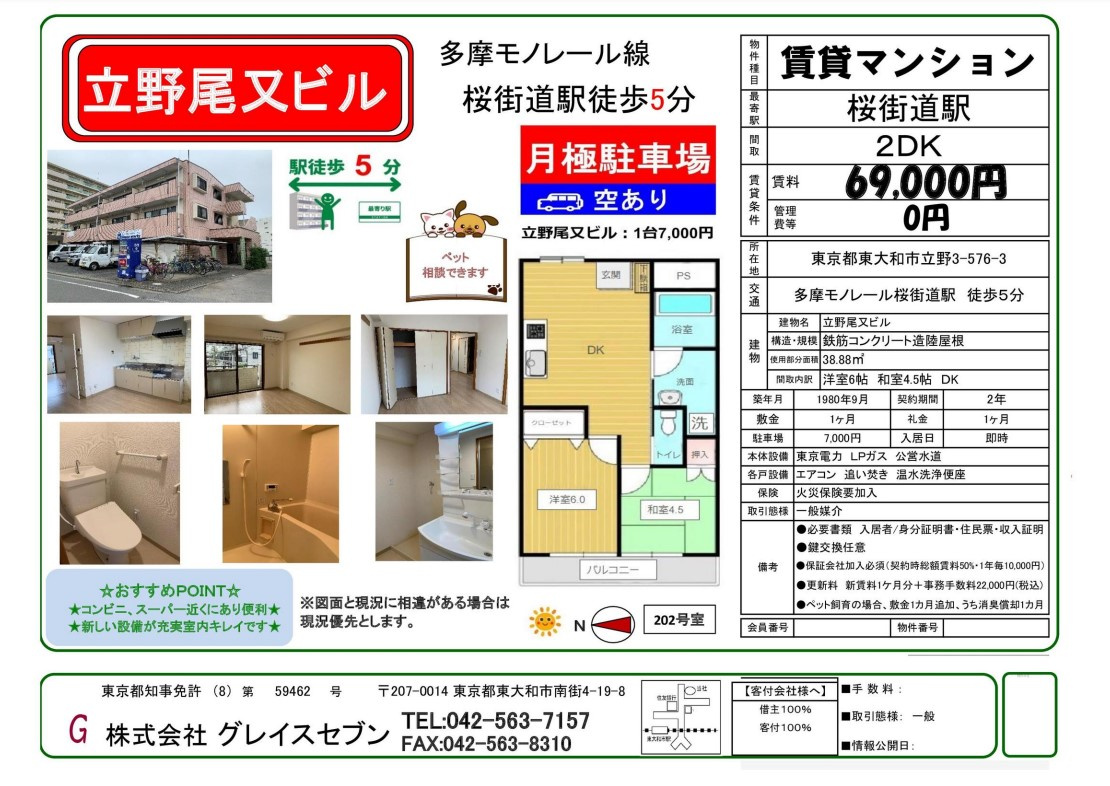 グレイスセブンでは多摩地区を中心に23区など