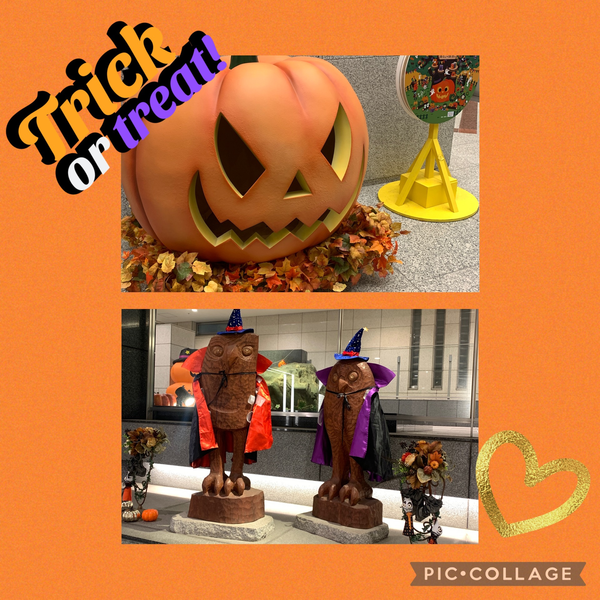 池袋にあるシュールなフクロウさんのオブジェも、仮装されておりましたよ。